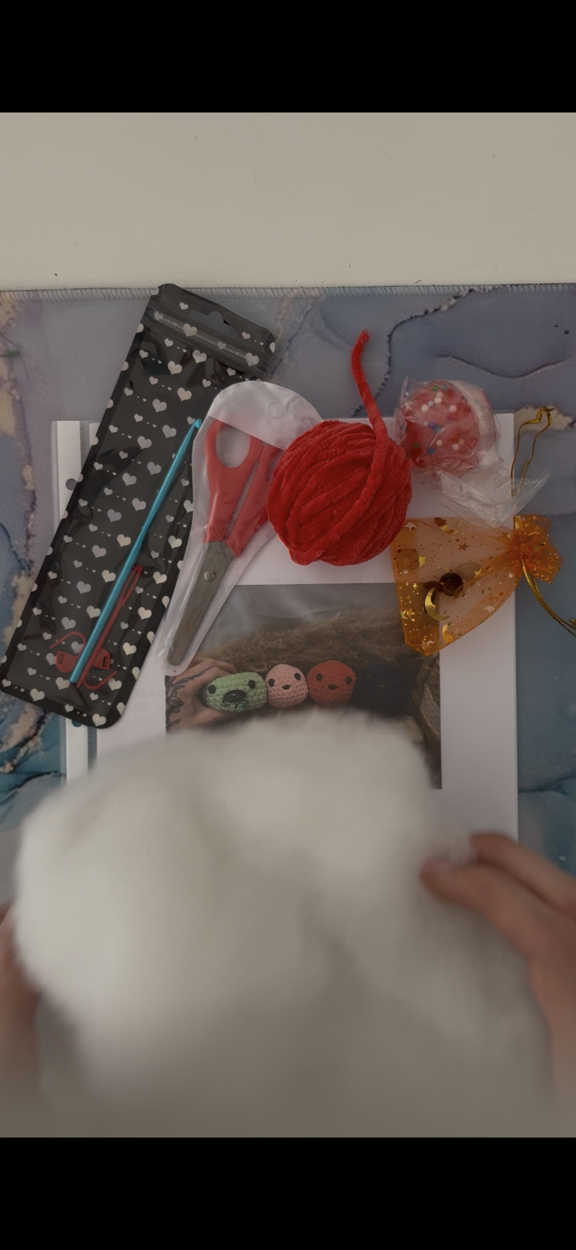 - Häkelwerkzeug (Häkelnadel, Schere, Maschenmarkierer, Stopfnadel)