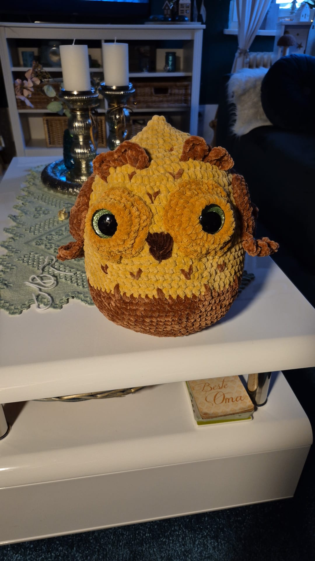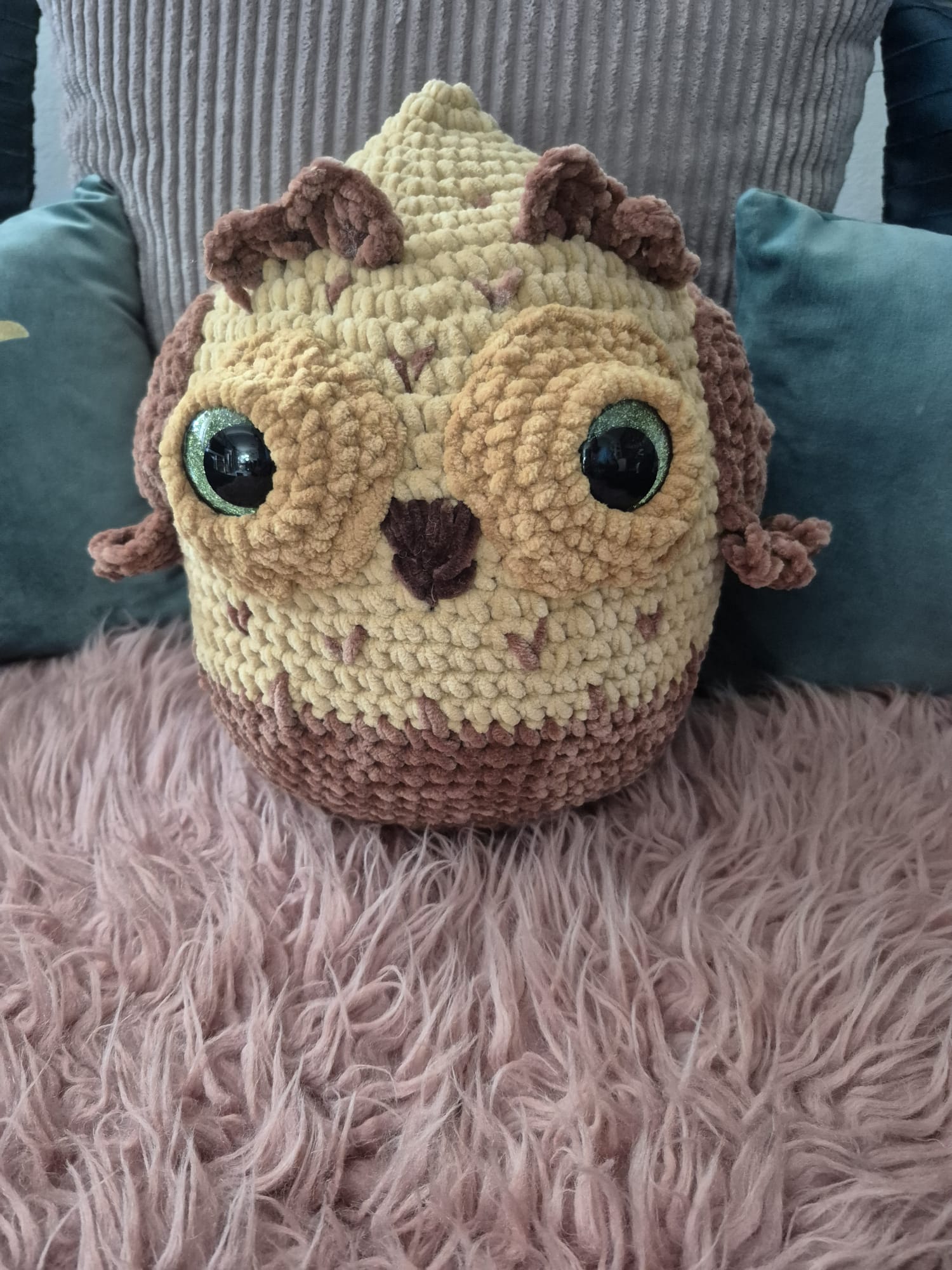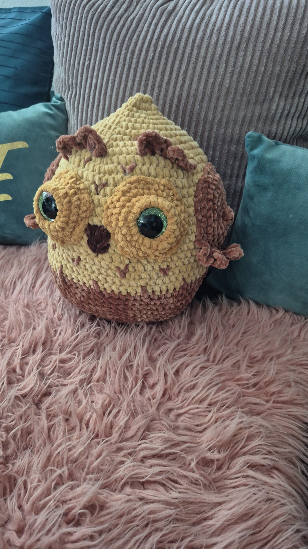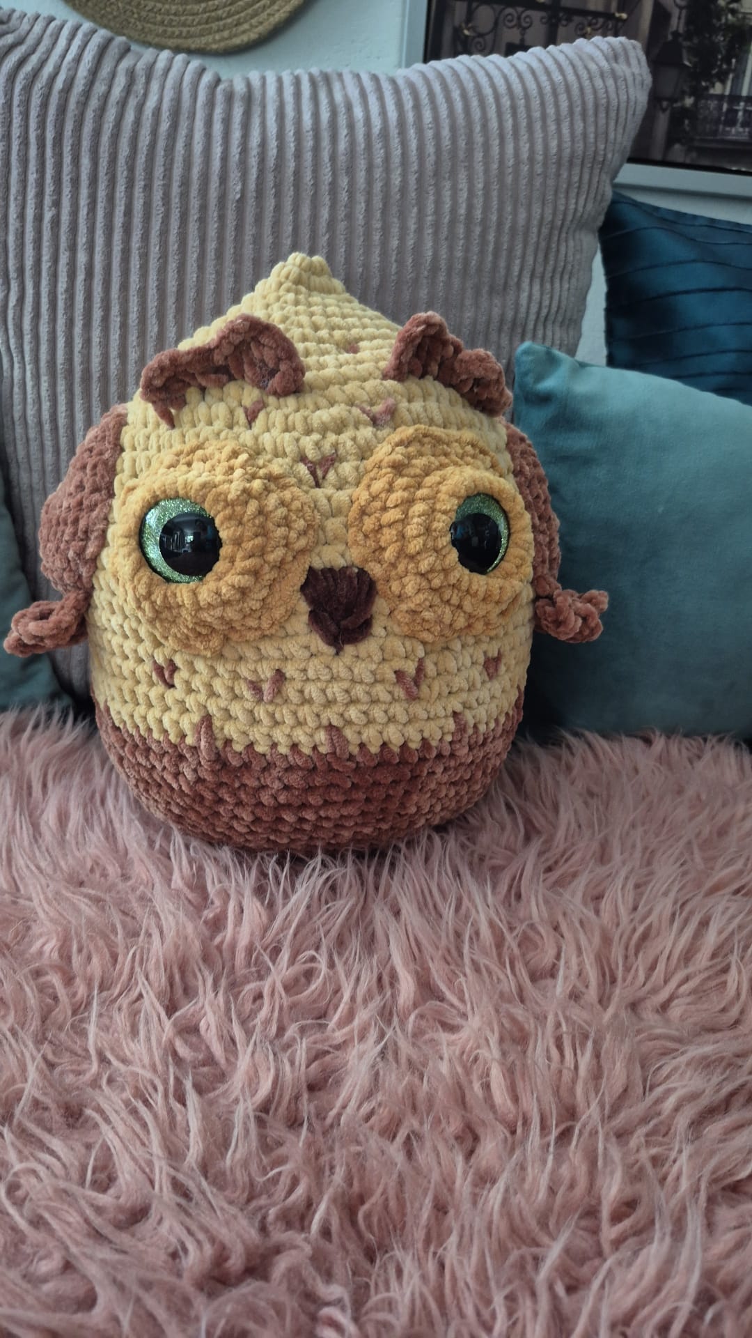 Aus weicher Samtwolle gehäkelt und mit Füllwatte gefüllt, die Sicherheitsaugen sind sehr fest und können nicht gelöst werden.
